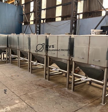 SVS Paslanmaz, IBC toz konteynerlerini tesis yerleşimi, kapasite ihtiyacı ve proses gereksinimlerine göre özel olarak tasarlamaktadır. Projelerde;
